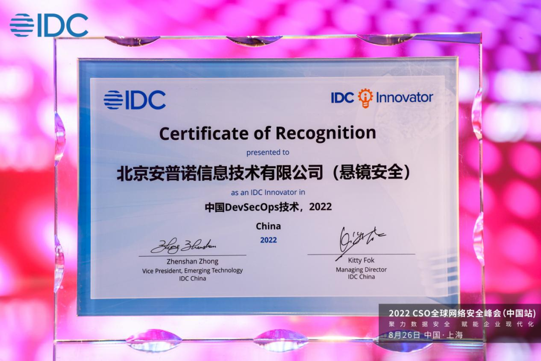以上就是快乐煎饼最近收集整理的关于斩获双奖 | 悬镜安全亮相IDC 2022 CSO全球网络安全峰会的全部内容,更多相关斩获双奖内容请搜索靠谱客的其他文章。
