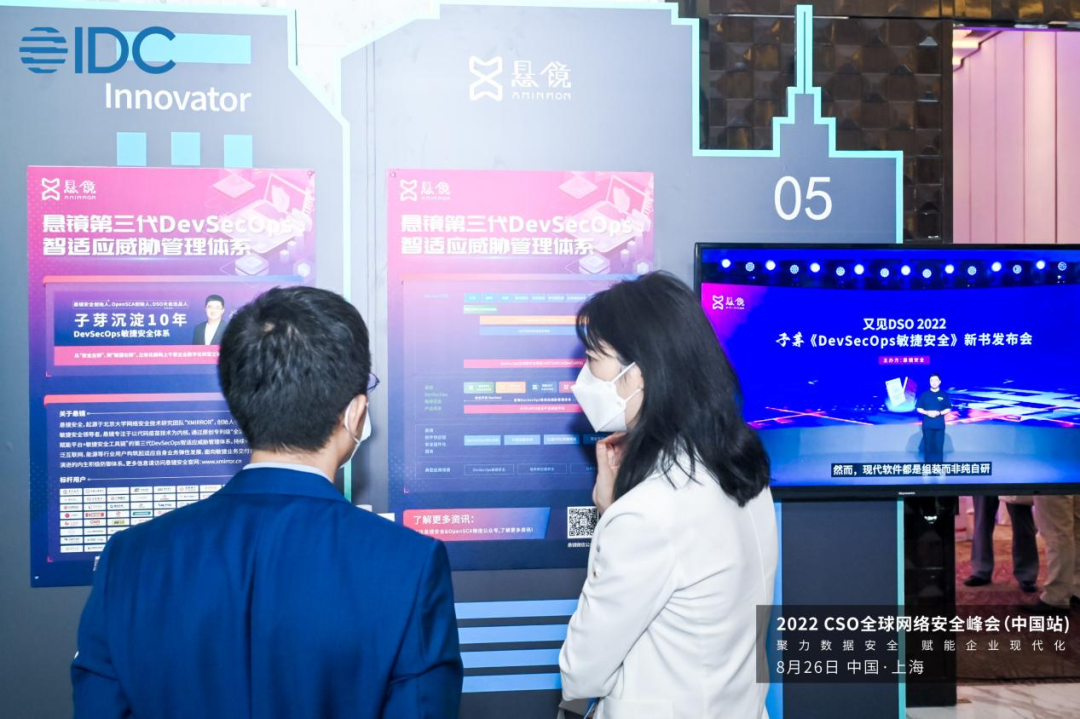 作为DevSecOps敏捷安全领导者、软件供应链安全领域领军企业,悬镜安全此次携“第三代DevSecOps智适应威胁管理体系”、创始人兼CEO子芽的专业著作《DevSecOps敏捷安全》、《软件供应链安全治理与运营白皮书(2022)》等诸多前沿技术和创新实践成果,在大会现场“安全小镇”展区一经亮相,就备受广大与会嘉宾的重点关注。