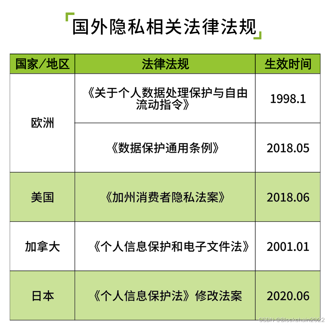 如上图所示,以欧洲GDPR法规为代表,1995年,欧盟通过了《数据保护指令》作为隐私保护先驱,制定了具有开创性的指令与法律。
