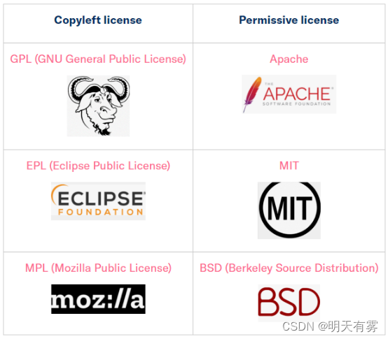 - GPL:由Richard Stallman创建,目的是保护GNU软件不被侵犯。这个协议属于Copyleft类型,它要求任何使用GPL许可证的开源依赖项的人必须以开源的方式发布他们的代码。