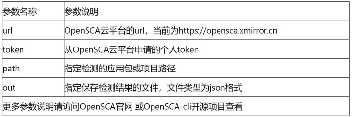 opensca-cli -url https://opensca.xmirror.cn -token ${token} -path ${project_path} -out output.json