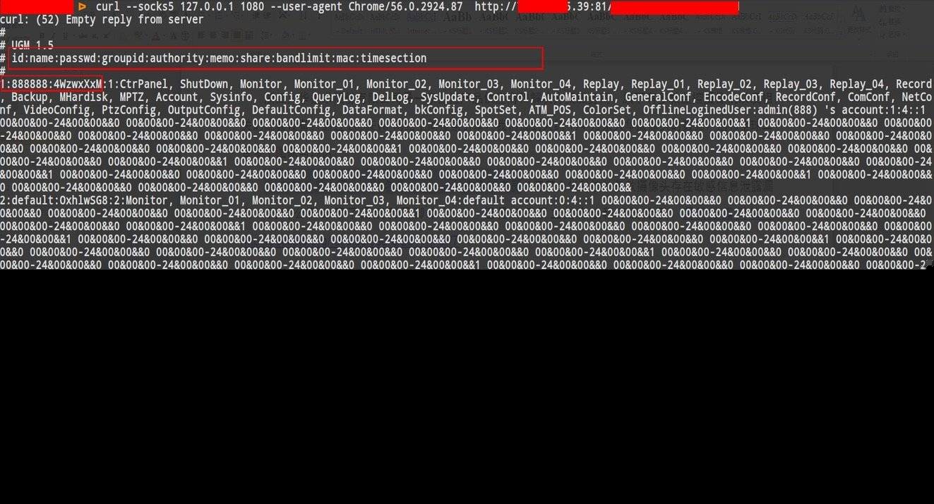 知道创宇404实验室通过研究分析成功复现了该漏洞,确定该漏洞是一个敏感信息泄露漏洞。攻击者无需任何凭证的情况下访问一个链接即可得到摄像头设备Web管理的用户名和哈希密码等信息泄露: