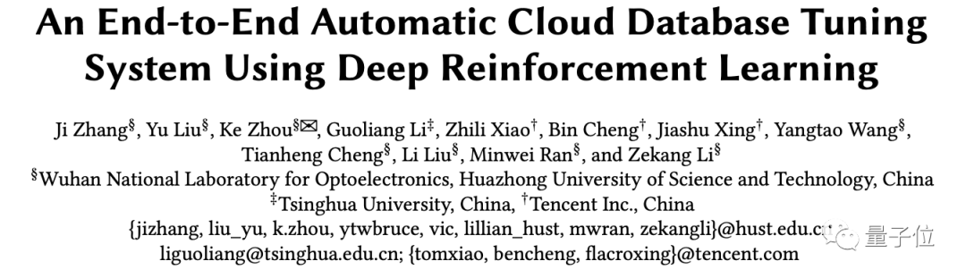 1、《An End-to-End Automatic Cloud Database Tuning System Using Deep Reinforcement Learning,采用深度强化学习的端到端云数据库自动性能优化系统》