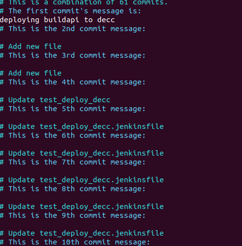 然后编辑第二个界面,这都是提交的 commit 说明,其他的都用 # 屏蔽掉,只留一个白色的内容对其进行编辑,这就是最后提 post-review时的说明内容。