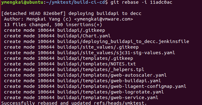 因此,git rebase -i commit-id 中 commit-id的取值就应从 Yong Ma这里取,由于是开区间所以,Yong Ma的记录是不会包含进去的。