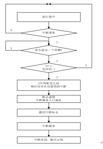 中断处理过程分为4个阶段:中断请求,中断响应,中断服务和中断返回。8051单片机的中断过程流程图如下:
