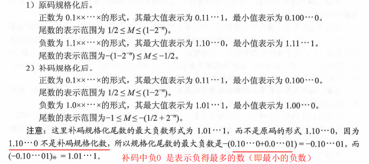 这里面需要注意的一个坑是:为了机器判断方便,在补码表示中往往不把-1/2列入规格化的数。故补码的尾数最大不是-1/2。还有就是-1的补码是1.000...00。