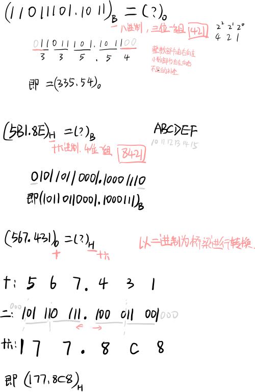 分组法:适合于二进制、八进制、十六进制之间的相互转换。