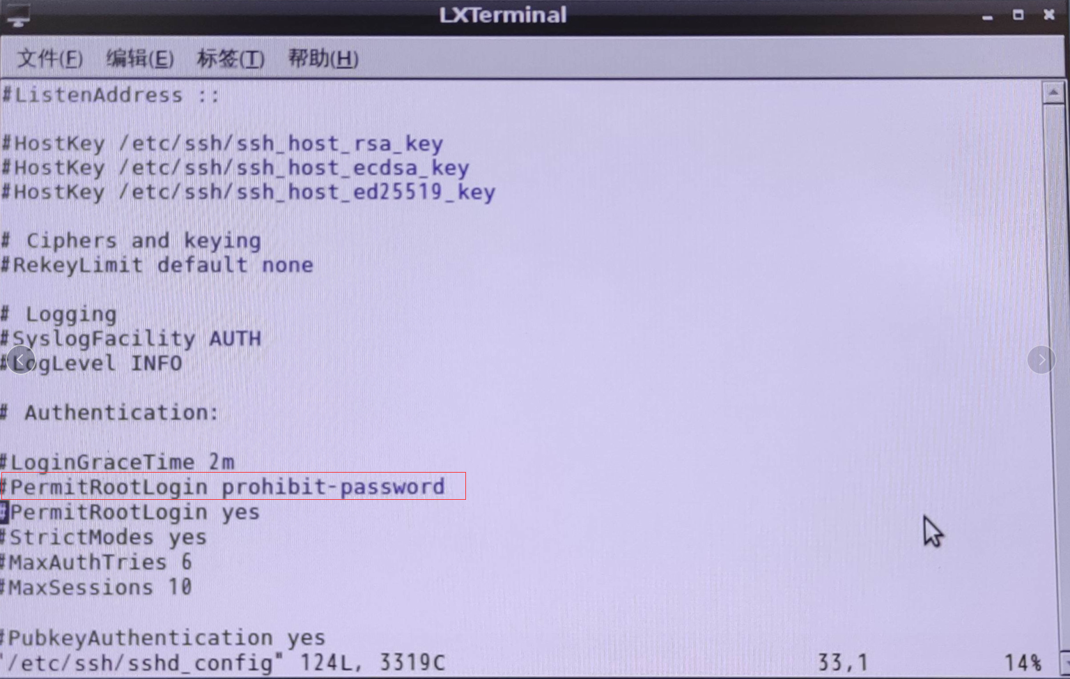 去掉前面的‘#’号,改成PermitRootLogin yes保存退出