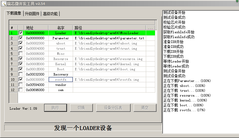 安装驱动DriverAssistan_v4.54 , 打开安卓工具2.54, 板子用 typec连接电脑 , 进入loader模式. 准备烧录.