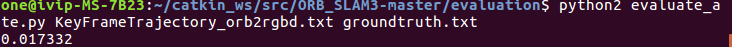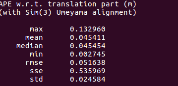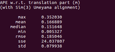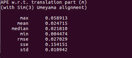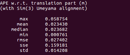 evo_ape tum KeyFrameTrajectory.txt data.tum -p --plot -s --correct_scale -a --align -v --save_results ape.zip
