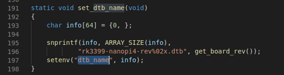 其代码本质是调用 getenv 从环境变量中取得 "dtb_name"变量上的字符串