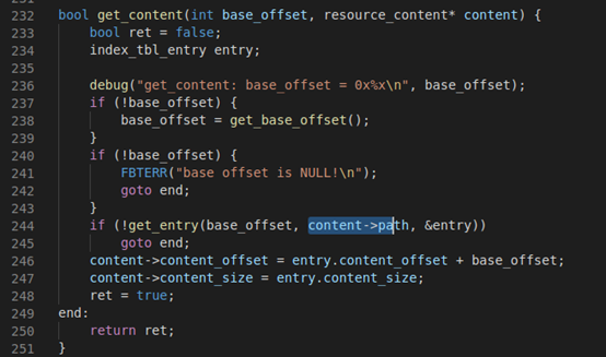 将 content.path 传入 get_entry() 函数,其函数修改传入的 entry 参数变量。get_entry() 函数也在common/resource.c