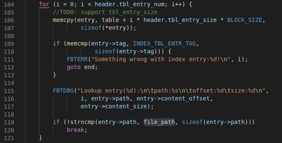 FBTDBG("Lookup entry(%d):ntpath:%sntoffset:%dtsize:%dn",