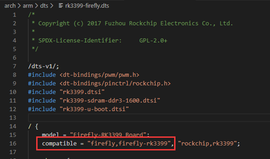 在 ubootarcharmdtsrk3399-firefly.dts 中我们可以看到