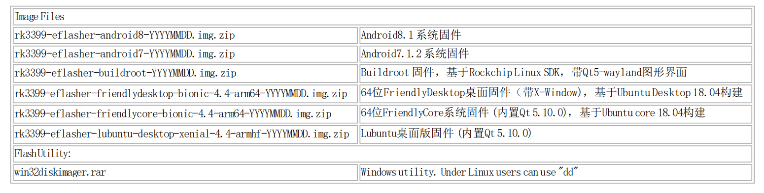 ● 下载并解压 固件文件rk3399-eflasher-OSNAME-YYYYMMDD.img.zip 和 工具win32diskimager;
