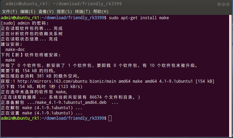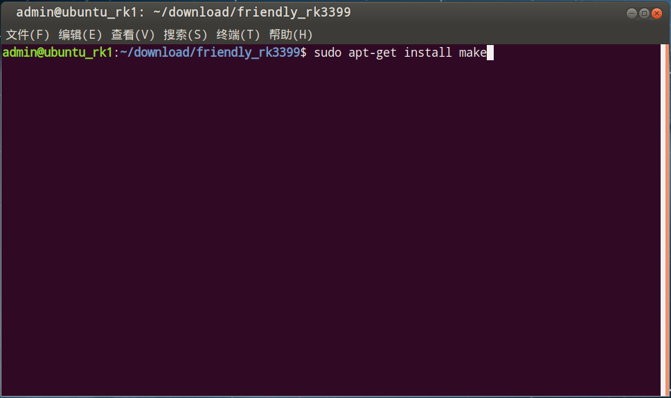 使用 sudo apt-get install make 指令安装make