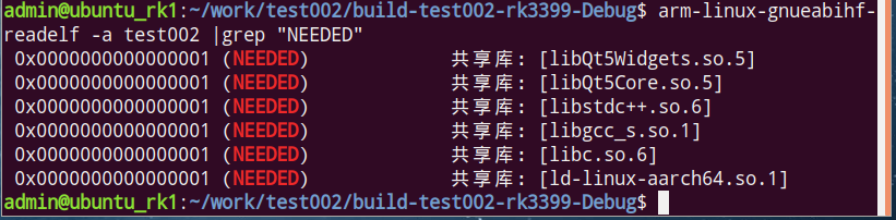 如果依赖库也有依赖,同样可以使用arm-linux-gnueabihf-readelf -a指令查看