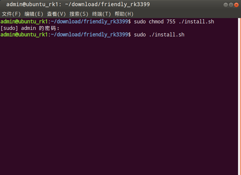 打开命令行,为安装脚本设置执行权限,并执行安装