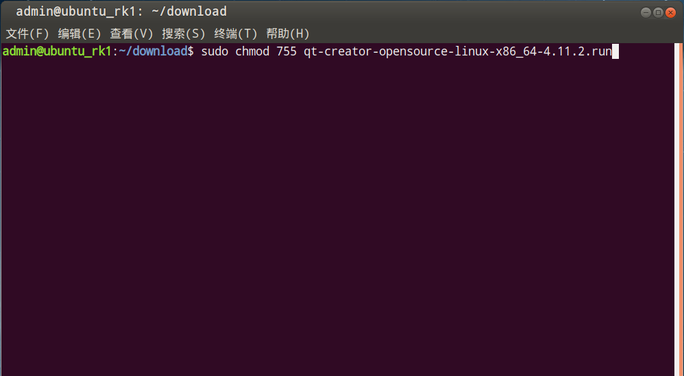 打开命令行,赋予执行权限,并执行安装