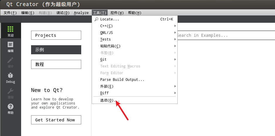 首先进入qtcreator目录,并打开qtcreator