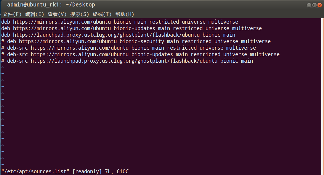 编辑sources.list文件
