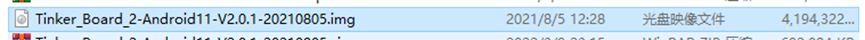 下载之后解压,得到一个名为Tinker_Board_2-Android11-V2.0.1-20210805.img的文件,就是用来烧录的。
