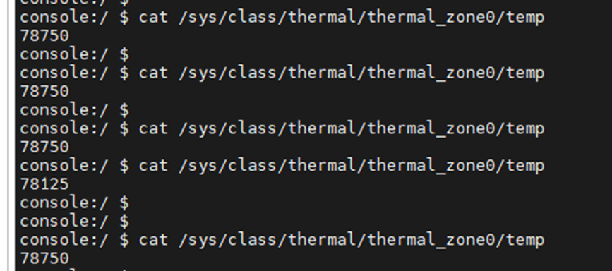 测试过程中,SOC的最高温度可以达到78摄氏度,RK3399的工作温度范围是0-80摄氏度,这个温度已经接近其极限,在这种情形下,芯片会动态调整其工作频率。