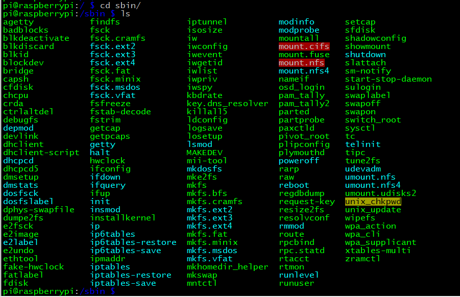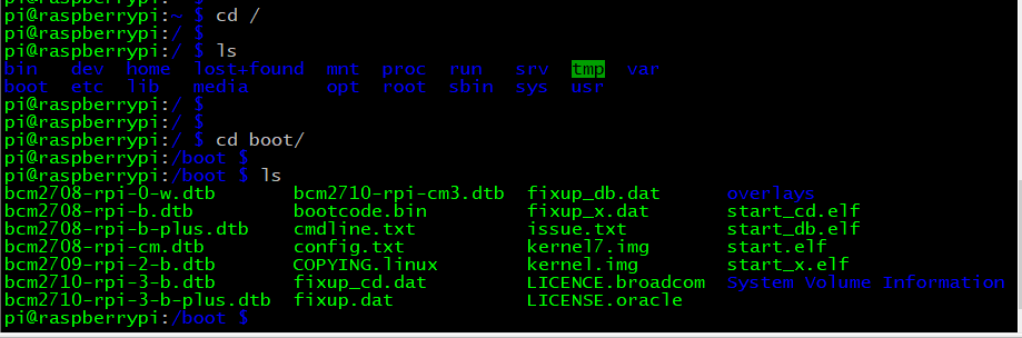 树莓派的文件系统:(就是我们根目录底下的东西,他的组织架构没有c盘,D盘的概念)