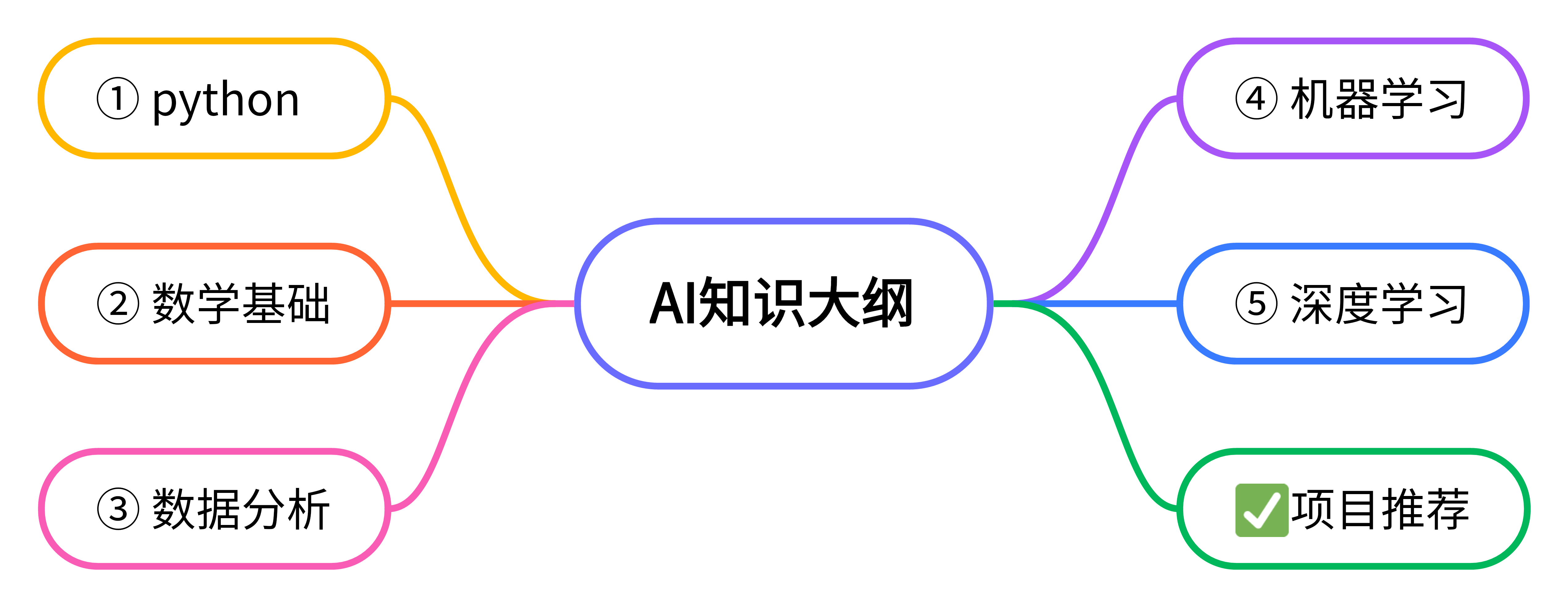 AI知识大体可以分为5个模块,接下来我会依次介绍每个模块的学习路径,最后给大家推荐几个我入门时做过的项目,帮助大家快速入门人工智能。