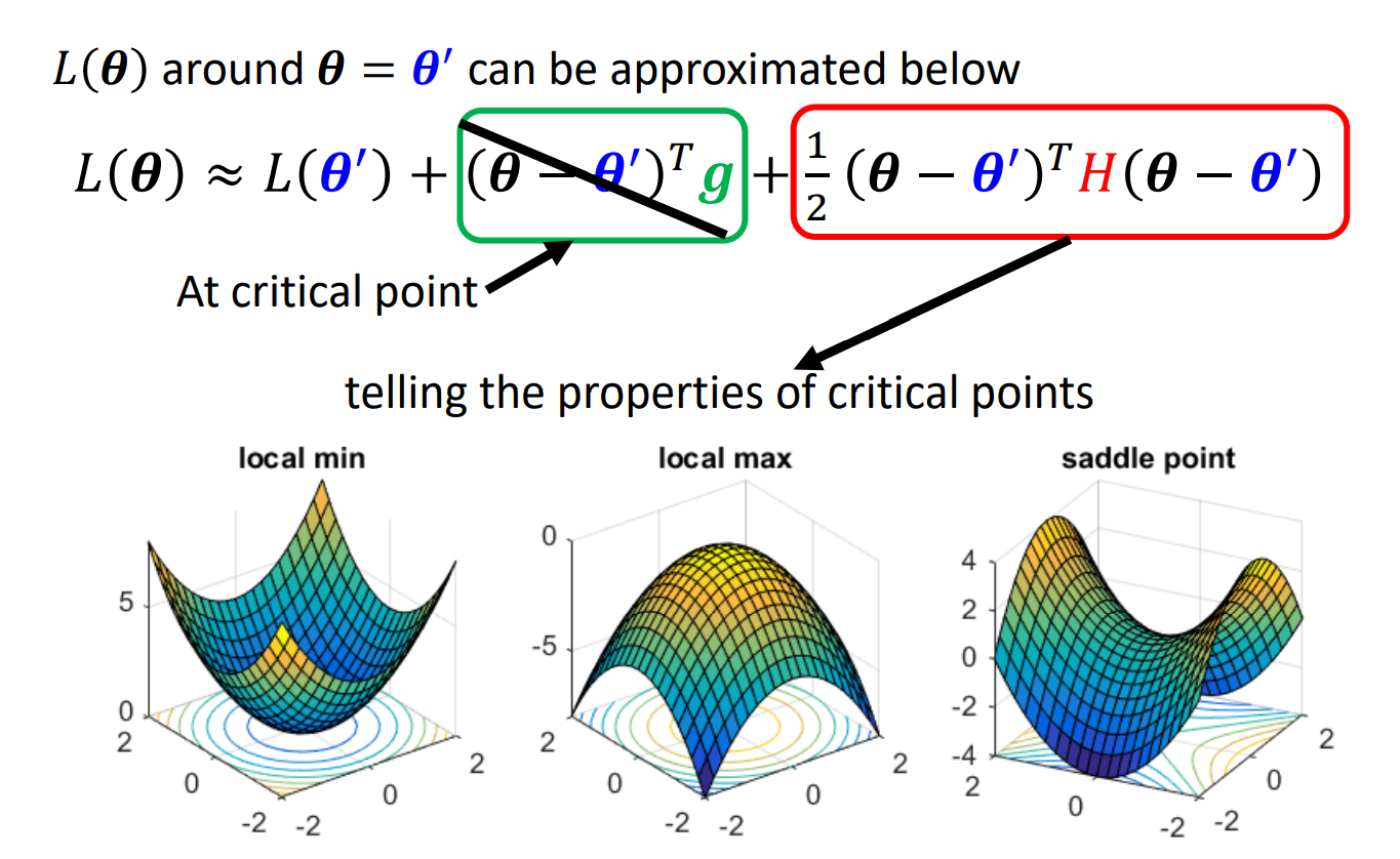 在梯度为0的情况下,计算L(),以此判断鞍点与局部最小
