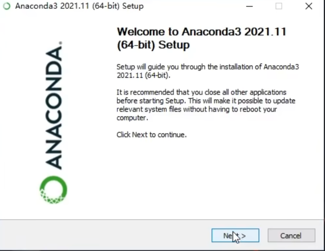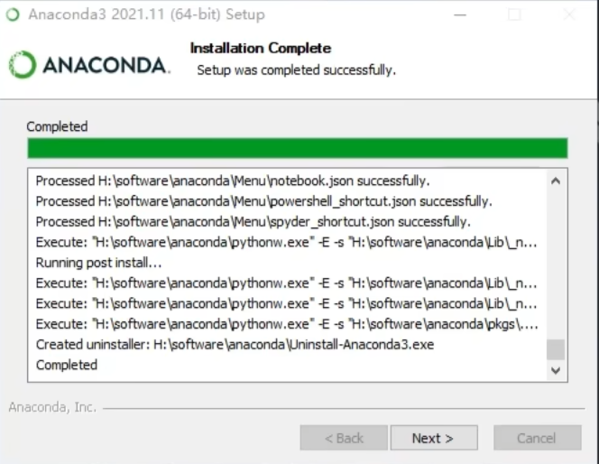 7、当Next按钮变亮,可点击的时候,说明Anaconda已经安装成功,关闭窗口。