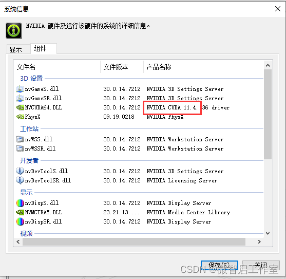打开显卡控制面板后→帮助→组件,就可以查看CUDA了