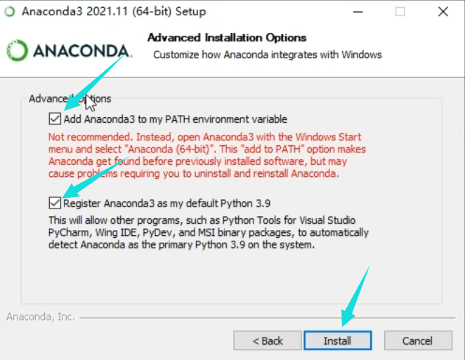 6、一定要记得勾选这两个复选框,否则后续需要手动配置PATH环境变量