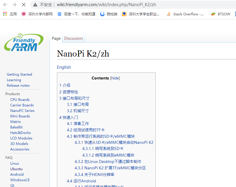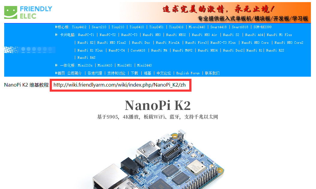 2.找到nano pi k2点击,然后点击下方wiki链接,跳转到wiki百科页面: