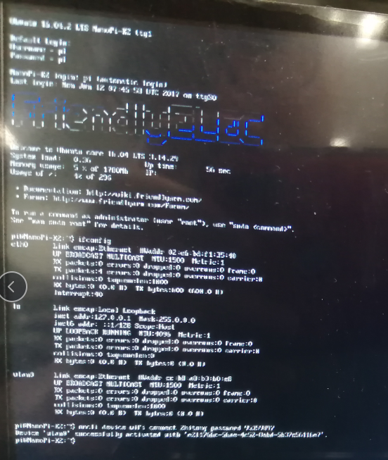 完成!可以参照另一篇文章让nano pi k2连上wifi这样就可以用ssh通过网络登录了: