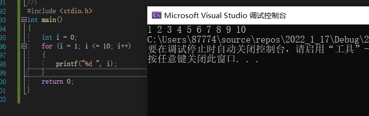 while(i<=10) //当i<=10时 表达式返回值非零为真,进入循环