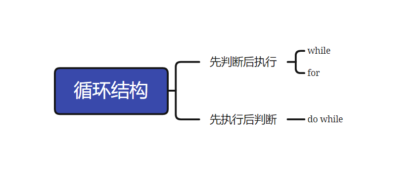 根据判断条件,循环结构又可细分为以下两种形式:先判断后执行的循环结构和先执行后判断的循环结构。