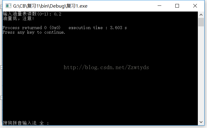 printf("输入油量表读数(0-1): ");