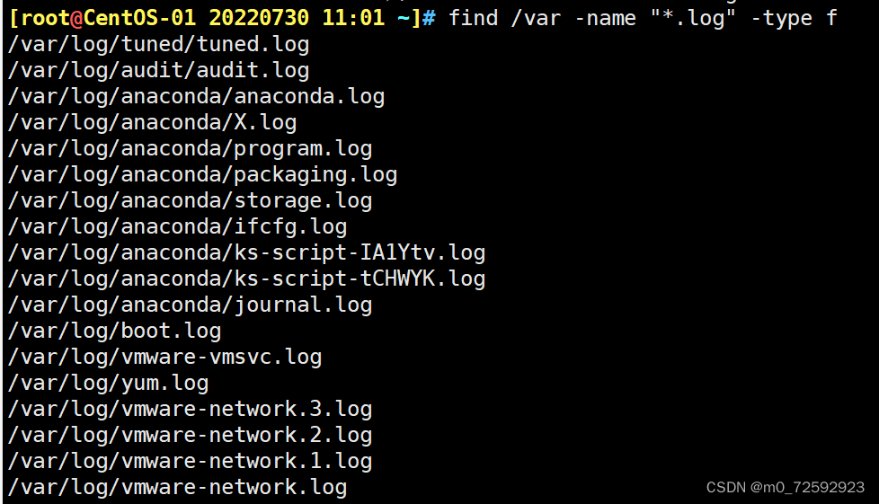 [root@CentOS-01 20220730 11:01 ~]# find /var -name "*.log" -type f