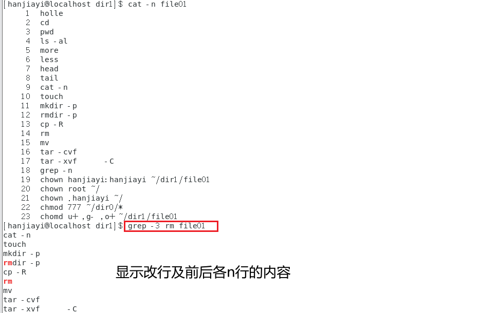 grep -n 要查找的字符 位置:显示该行及前后各n行的内容