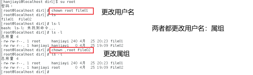 chown 用户名 文件或目录:只修改文件的所有者