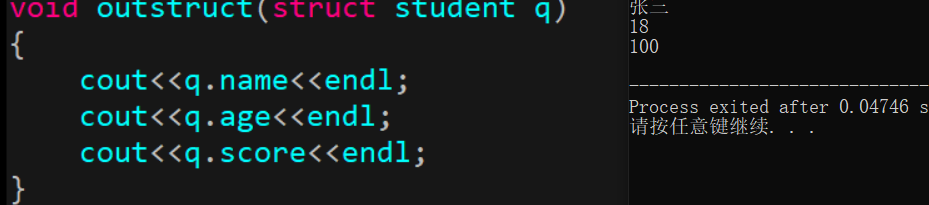 cout<<"in outstruct: age= "<<q.age<<endl;