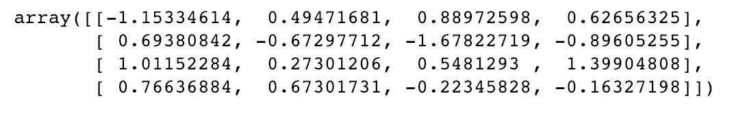 比如可以使用normal来得到一个标准正态分布的4*4样本数组: