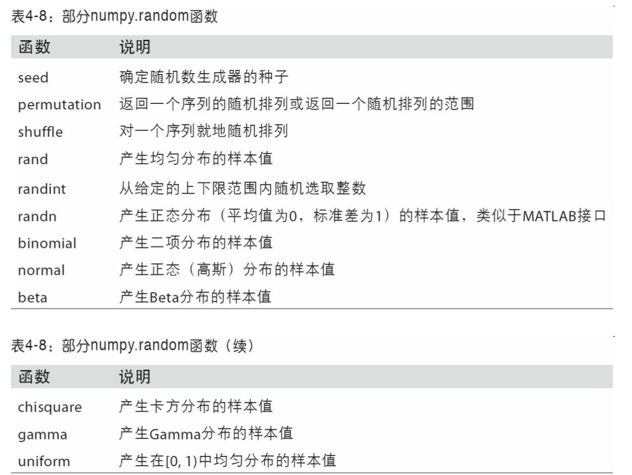 numpy.random模块对Python内置的random进行了补充,增加了一些用于高效生成多种概率分布的样本值函数。