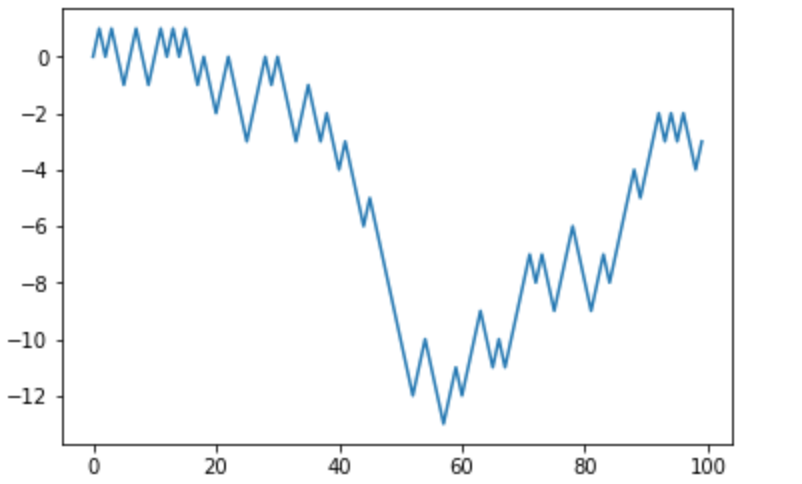 通过模拟随机漫步来说明如何运用数组运算,看一个简单的随机漫步的例子:从0开始,步长1和-1出现的概率相等。
