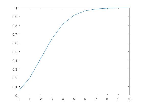y=poisscdf(x,3); %λ=3 生成泊松分布的概率分布函数