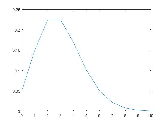 px=poisspdf(x,3); %λ=3 生成泊松分布的概率密度函数