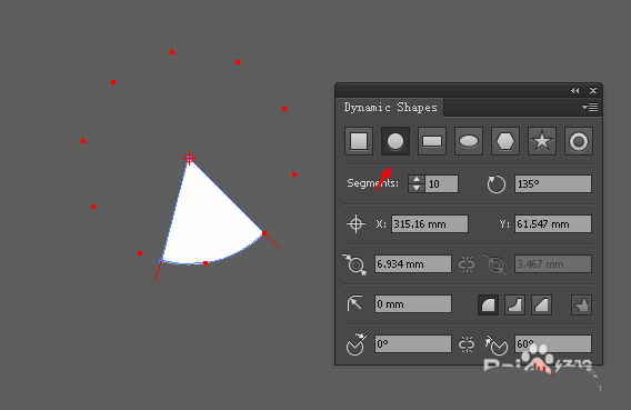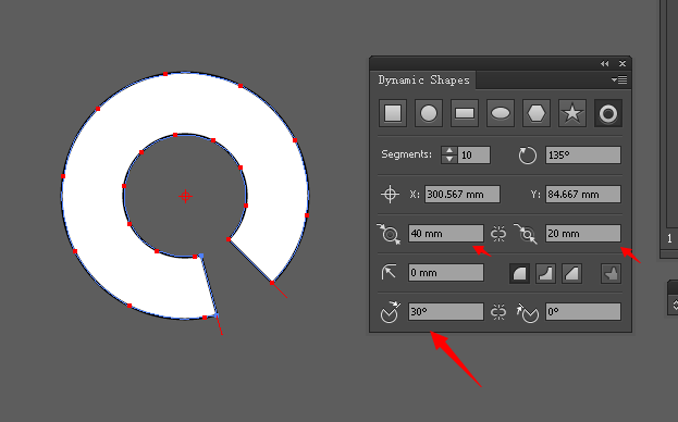 4、圆环上面有红色腺线条,拖动线条进行分割,还可以修改内外圆的半径