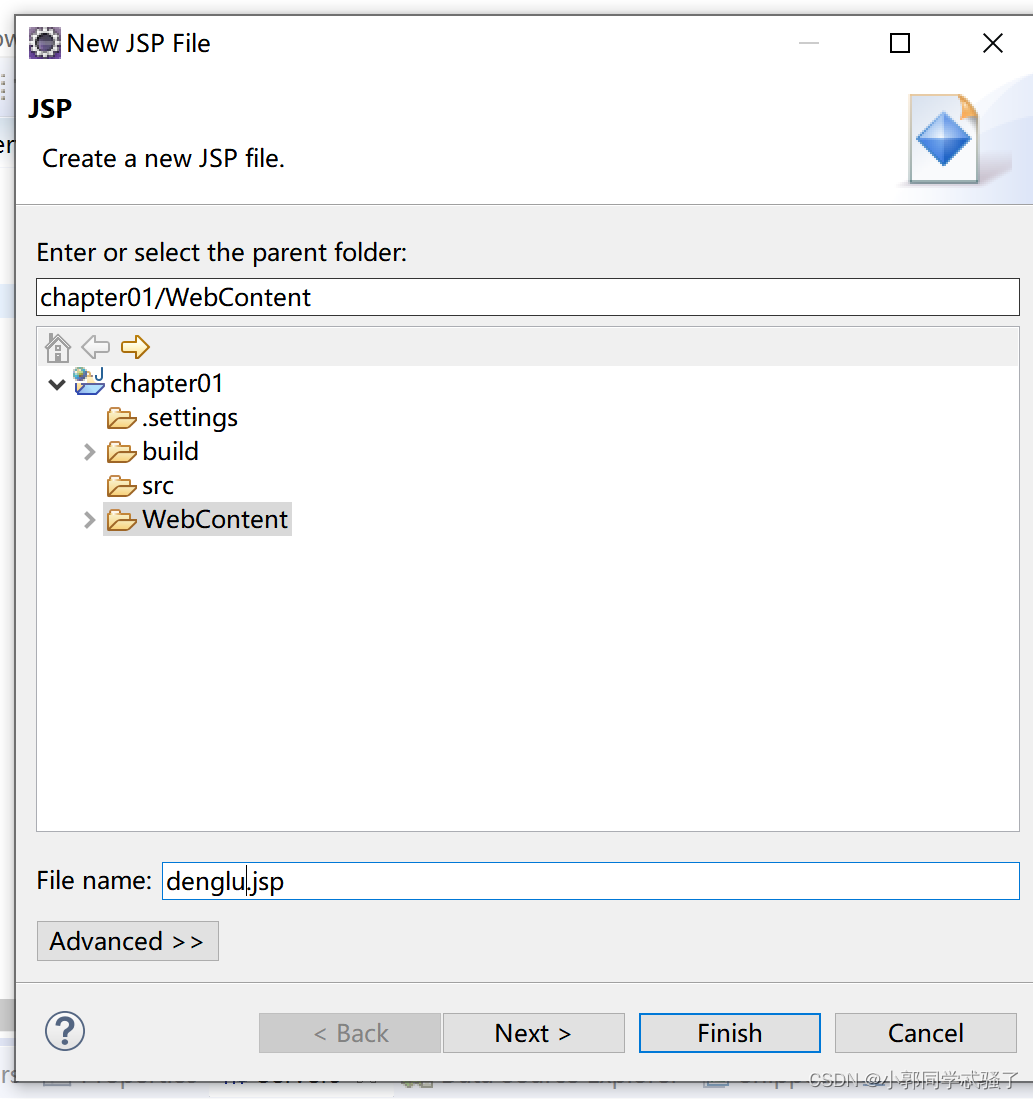 2.在WebContent下创建jsp文件,命名denglu.jsp